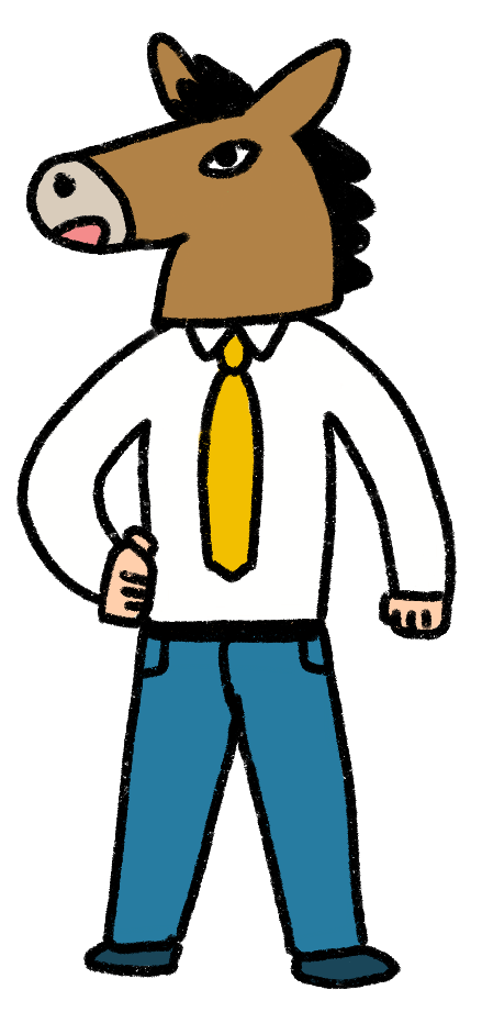 「馬マスクを被った男性のイラスト」のイラストは、会員登録せずに無料でダウンロードができるフリー素材です。